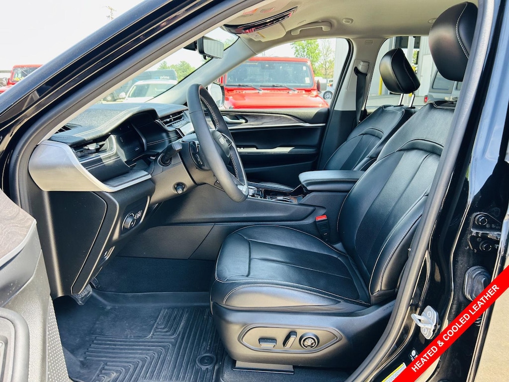 Step inside the 2023 Jeep Grand Cherokee L Limited 4x4 and experience a world of refined comfort and thoughtful design. The Leather front seat upholstery in Global Black exudes sophistication, while the Heated front seats and Cooled front seats provide personalized comfort in any climate. The Heated Leatherette Steering Wheel adds a touch of luxury, while the Automatic climate control ensures a consistently comfortable cabin temperature. The driver and front passenger benefit from Power driver seat controls and Power passenger seat controls with 8-way adjustability and 4-way power lumbar support. Rear passengers will appreciate the Rear climate control system with separate controls and the convenience of Rear under seat ducts. The vehicle also features a Power Liftgate Rear Cargo Access, making loading and unloading cargo effortless. Enjoy the convenience of Keyfob keyless entry, Remote start, and a suite of power features, including Power door locks and Power windows.