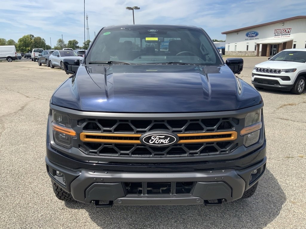 $6,243 off MSRP! 2025 Ford F-150 Tremor 5.0L V8 10-Speed Automatic Blue Metallic 2nd Row Heated Seats, 4 Pickup Box Tie-Down Plates, Adjustable pedals, Ambient Lighting, B&O Sound System by Bang & Olufsen, Bed Utility Package, Console Worksurface, Emergency communication system: SYNC 4 911 Assist, Front dual zone A/C, Fully automatic headlights, GPS / Navigation, Heads-Up Display, Heated door mirror, Heated Seats, Heated Steering Wheel, Integrated Trailer Brake Controller, LED Box Lighting, Low tire pressure warning, Mobile Office Package, Partitioned Lockable Rear Storage, Power door mirrors, Power passenger seat, Power Tailgate, Rain-Sensing Wipers, Rear window defroster, Remote keyless entry, SYNC 4 w/Enhanced Voice Recognition, Tow/Haul Package, Unique Tremor Leather-Trimmed Bucket Seats, Wireless Charging.