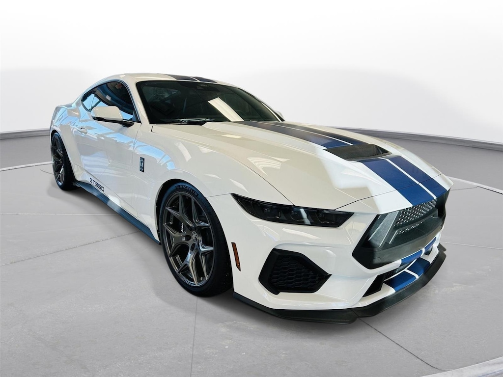 The heart of this Mustang is a beastly 5.0L V-8 engine churning out 486 horsepower, ready to deliver exhilarating performance whenever you demand it. The 6-speed manual transmission puts you in complete control, offering a direct and engaging connection to the road. With features like Selectable Drive Modes, you can tailor the Mustang's responsiveness to suit your mood and the conditions, whether you're navigating the occasional gravel road outside Tuscola or enjoying a spirited drive on a clear day. The MagneRide Damping System adapts to changing road surfaces in milliseconds, providing a smooth and controlled ride. The Rear Wheel Drive configuration delivers classic Mustang handling, ensuring every corner is a thrill. And with the Auto Stop-Start feature, you can conserve fuel while idling, making it surprisingly practical for daily driving.