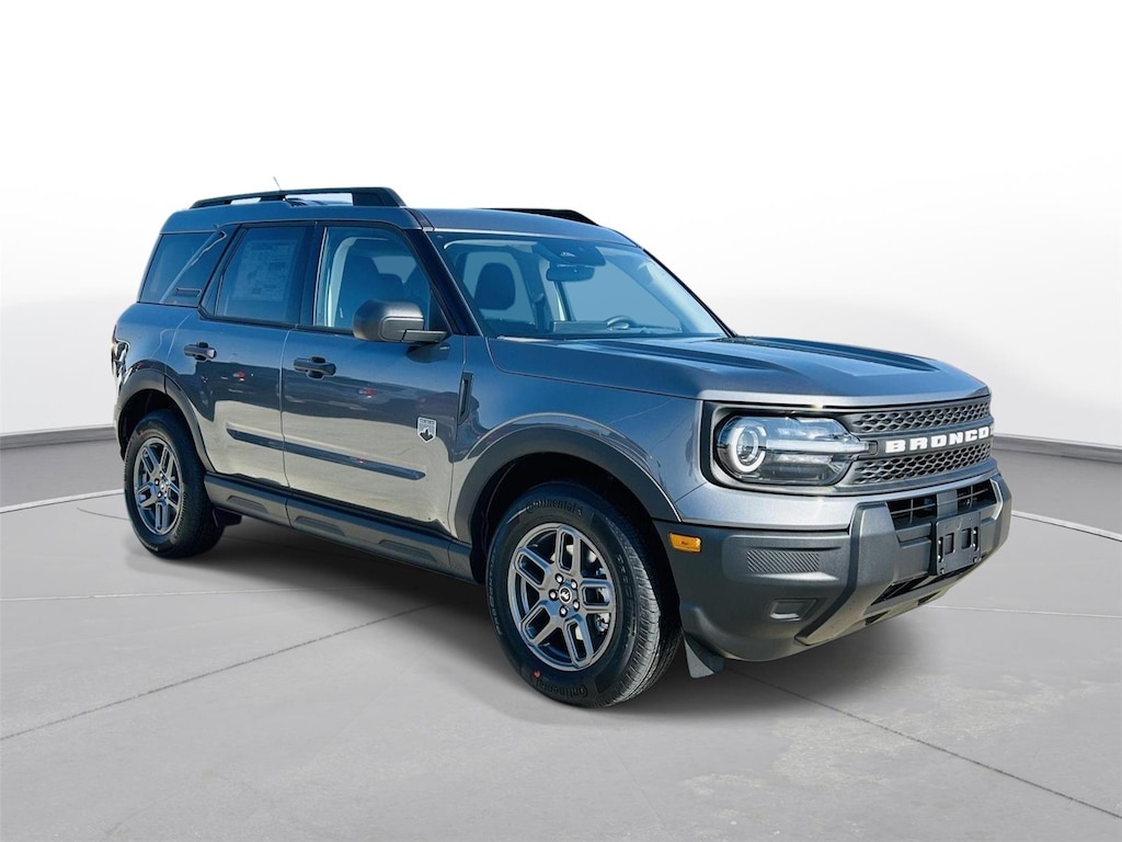 The 2026 Ford Bronco Sport Big Bend boasts a rugged and stylish exterior that's sure to turn heads. The Carbonized Gray Metallic paint finish exudes sophistication, while the 17-inch gray aluminum wheels add a touch of sporty flair. The black front and rear bumpers and gray grille contribute to the vehicle's distinctive look, and the integrated roof antenna provides a clean and aerodynamic profile. The LED headlights offer enhanced visibility, while the roof rails provide added versatility for carrying cargo. Check out our New Inventory today!