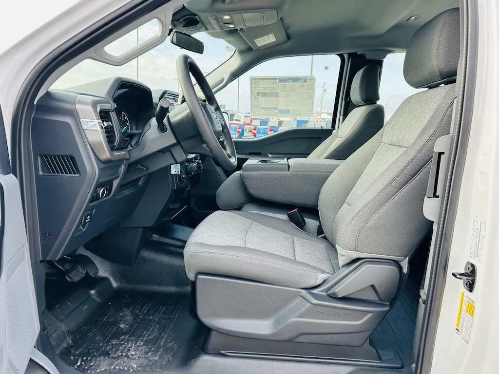 The F-150 XL's interior is designed for both comfort and practicality. The Cloth 40/20/40 Front Seat provides ample space for you and your crew, with a 60-40 Folding Split-Bench Front Facing Fold-Up Cushion Rear Seat offering flexible cargo options. Stay comfortable in any weather with the Manual Air Conditioning system and enjoy the convenience of Power door locks and Power windows. The Tilt/Telescoping Steering Column allows you to find the perfect driving position, while features like Cruise Control make long drives a breeze. With thoughtful touches like the Mini Overhead Console w/Storage and multiple beverage holders, everything you need is within easy reach.