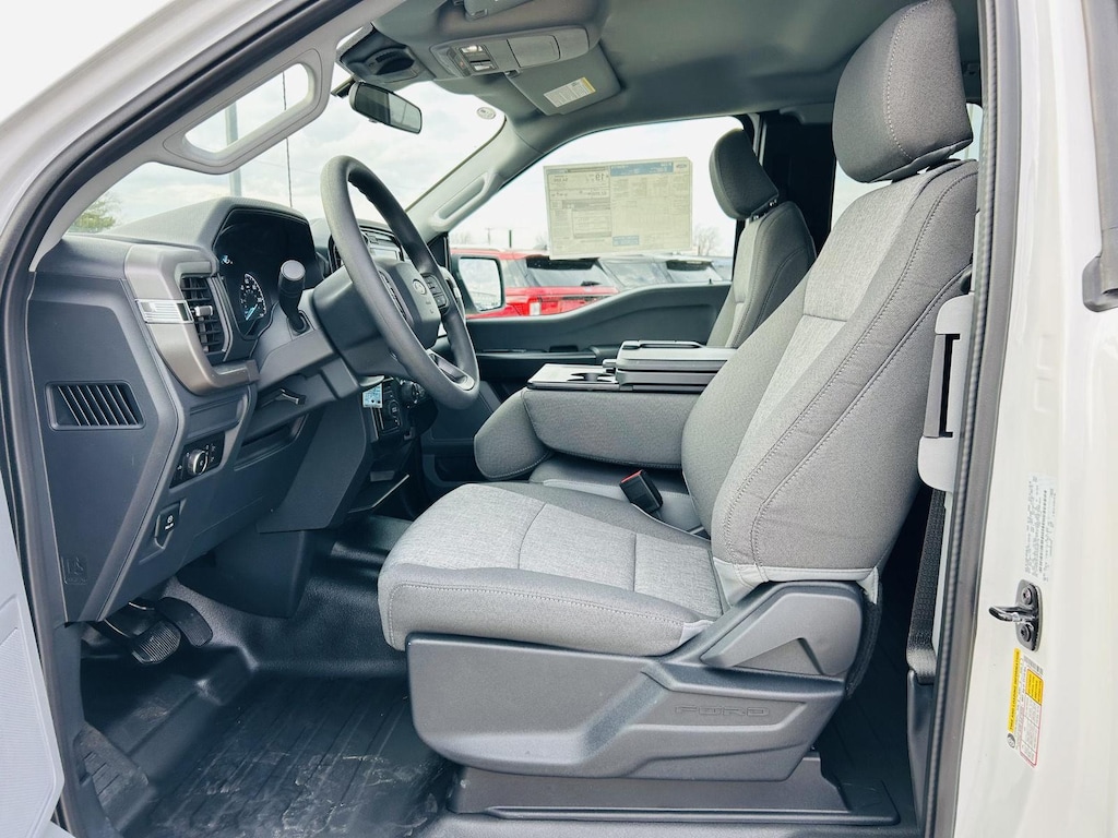 The F-150 XL includes thoughtful touches like a locking glove box, mini overhead console with storage, and integrated storage solutions throughout the cabin. The power windows and heated door mirrors add to the overall convenience. The urethane steering wheel and gear shifter are designed for durability and comfort, while the cruise control makes long drives more relaxed. The tilt/telescoping steering column allows you to find the perfect driving position.
