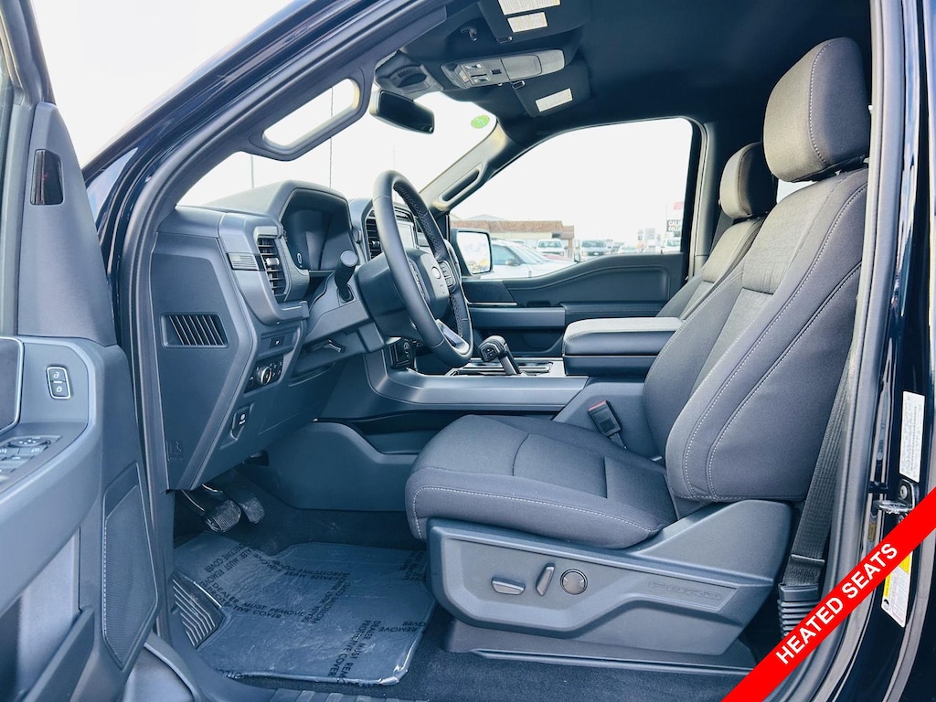 The F-150 XLT's interior is designed for comfort and convenience. Sink into the supportive Medium Dark Slate Cloth 40/Console/40 Front Seats and enjoy the convenience of the power driver seat controls and heated front seats on those chilly mornings. The dual-zone automatic climate control ensures everyone stays comfortable, no matter the weather. The remote start system allows you to warm up or cool down the cabin before you even step inside. The interior work surface provides a convenient space to get work done on the go. The locking rear under seat tray provides secure storage for your valuables. Plus, with features like power windows, power door locks, and keyless entry, your daily drive is made easier.