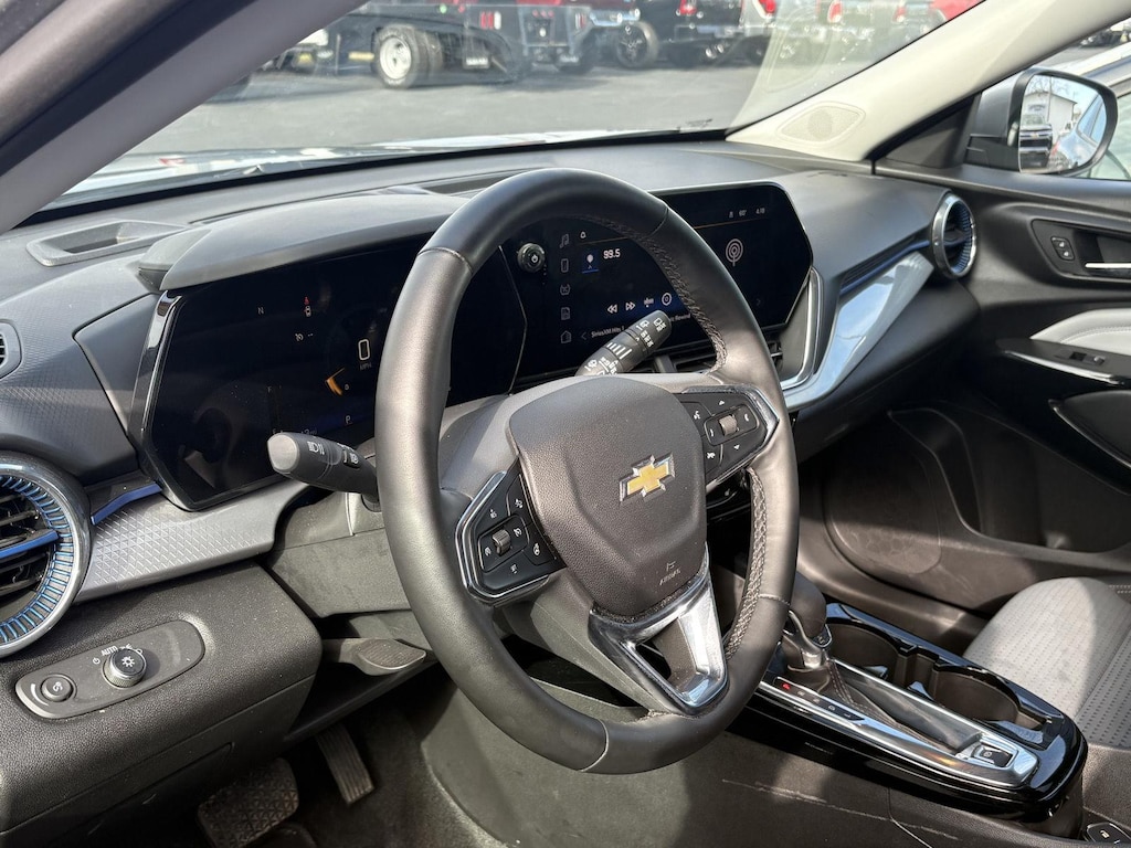 Step inside the 2025 Chevrolet Trax FWD LT and experience a comfortable and well-appointed interior. The Jet Black w/Blue Accents interior creates a modern and inviting atmosphere. The Cloth and leatherette front seat upholstery offers a premium feel. Stay comfortable year-round with automatic climate control. The Heated front seats Heated driver and front passenger seats and Heated steering wheel provide warmth on chilly mornings. The Power door locks with 2 stage unlocking and Keyless Start add convenience to your daily routine. The Cruise control Cruise control with steering wheel mounted controls makes long drives more relaxing. The Remote start feature allows you to warm up or cool down the cabin before you even step inside. Enjoy ample storage with the Cargo cover Rigid cargo cover and Cargo tie downs Cargo area tie downs.