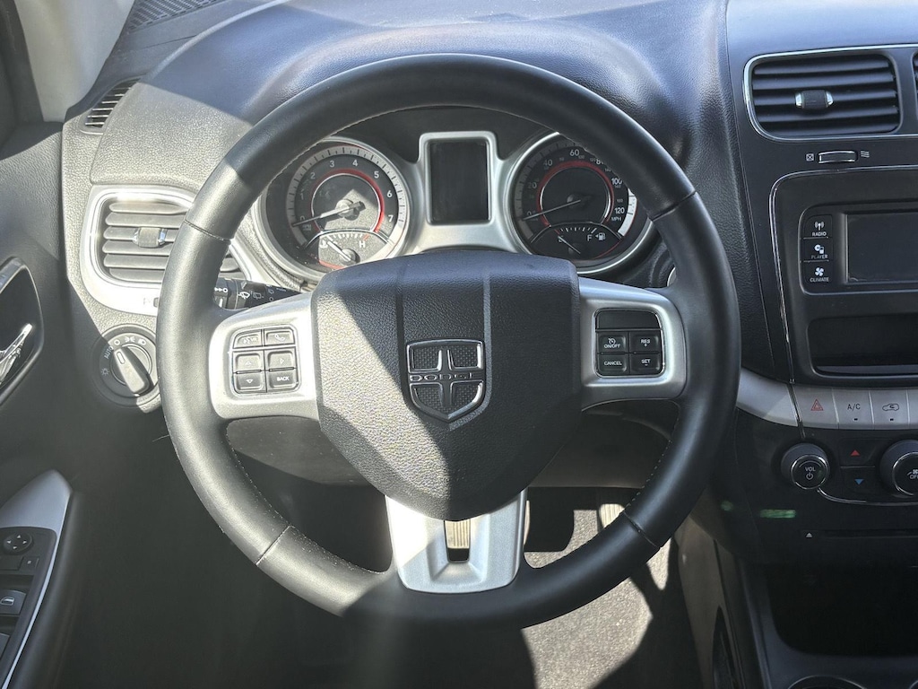 The 2018 Dodge Journey SE offers a comfortable and versatile interior designed to accommodate your family's needs. The Premium Cloth Low-Back Bucket Seats provide comfortable support for both driver and passengers. With Third Row Seating, there's plenty of room for up to seven passengers, making it ideal for carpooling or family outings. The Dual-Zone Front Climate Control ensures that everyone stays comfortable, regardless of their temperature preferences. The Leather Wrapped Steering Wheel provides a touch of luxury, while the Cruise Control makes long drives more relaxing. With ample cargo space and convenient storage solutions like the Cargo Area Concealed Storage, you'll have no problem hauling groceries, sports equipment, or luggage. The Journey's interior is designed with both comfort and practicality in mind.