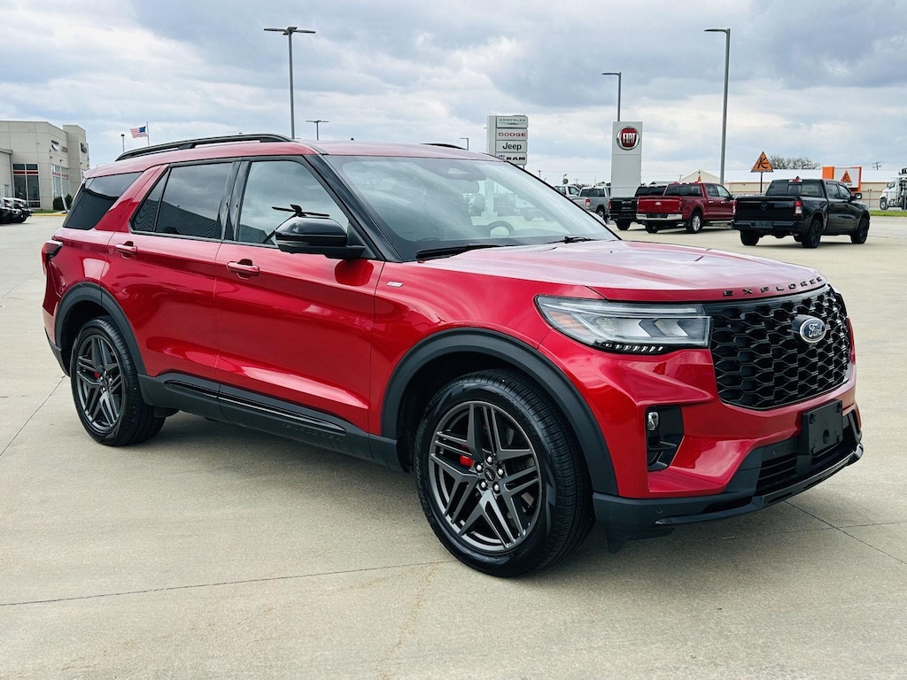 Imagine cruising down the tree-lined streets of Decatur, Illinois, the sun glinting off the sleek Rapid Red Metallic finish of your brand new 2025 Ford Explorer ST-Line. Whether it's a weekend trip to Lake Taylorville or just navigating the daily hustle, this SUV is ready for anything you throw its way.