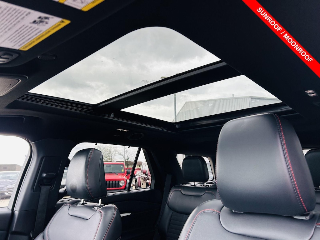 The 2025 Ford Explorer ST-Line makes a bold statement with its sporty and stylish exterior. The RAPID RED MET TINTED CC paint finish is sure to turn heads, while the Black grille and Body-Colored Front Bumper w/Black Bumper Insert give it a distinctive look. The Rear lip spoiler adds a touch of aerodynamic flair, while the Wheels 20 x 8-inch front and rear machined w/painted accents aluminum wheels complete the look. The Fog lights provide enhanced visibility in adverse weather conditions, while the Headlights LED low and high beam headlights offer superior illumination. The TWIN PANEL MOONROOF lets you enjoy open-air driving, while the Power door mirrors add convenience.